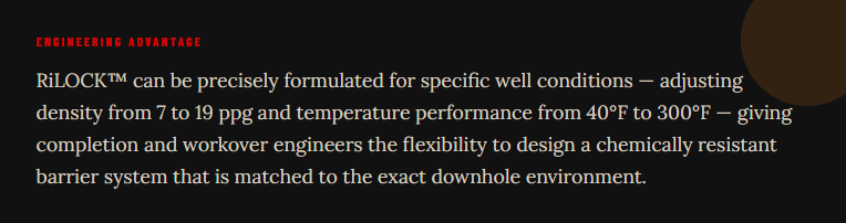 RiLOCK™ from Riteks is the answer for operators who demand more from their well barrier systems. With its optimized epoxy chemistry, broad temperature and density range, and proven oilfield applications, RiLOCK™ delivers the chemical resistance, mechanical integrity, and thermal stability that modern well integrity demands — whether you're completing a new well, performing a remedial squeeze, or securing a plug and abandonment for long-term compliance.
