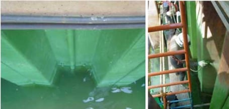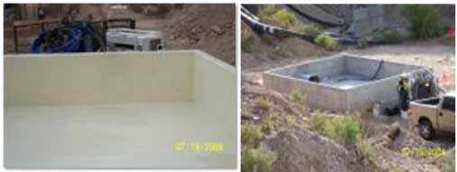 Mining Acid Tank Area – a concrete containment area used for storing sulfuric acid solution at a mining facility was coated with TZ-904. After 5 years, the inspection indicated the coating was still holding up well.
