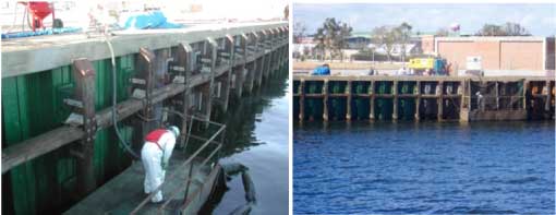 US Navy: Pensacola Navy Pier – Second of the Phase III Field Trials. Three side by side coatings tested as in San Diego.