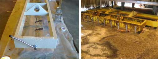 Mining Strong-Back Application – Strongbacks are supports used to hold the electrodes used for copper purification in mining electro-winning facilities. Surface preparation was minimal and corroded out areas could be filled w/ thicker application of TZ-904 (good gap-filling and adhesion).