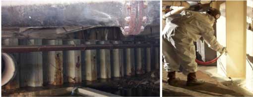 Explore field tests to comparing TZ-904 vs. a commercial competitor’s product. The coating was applied under misting conditions from the nearby cooling tower w/ minimal surface preparation, and hand-tool cleaning.